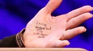 Much has been said about the hypocrisy of her using crudely handwritten notes on the palm of her hand when in the same appearance she used the beaten-to-death Murdoch/Ailes talking point about Obama depending on a teleprompter.