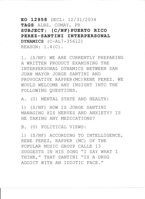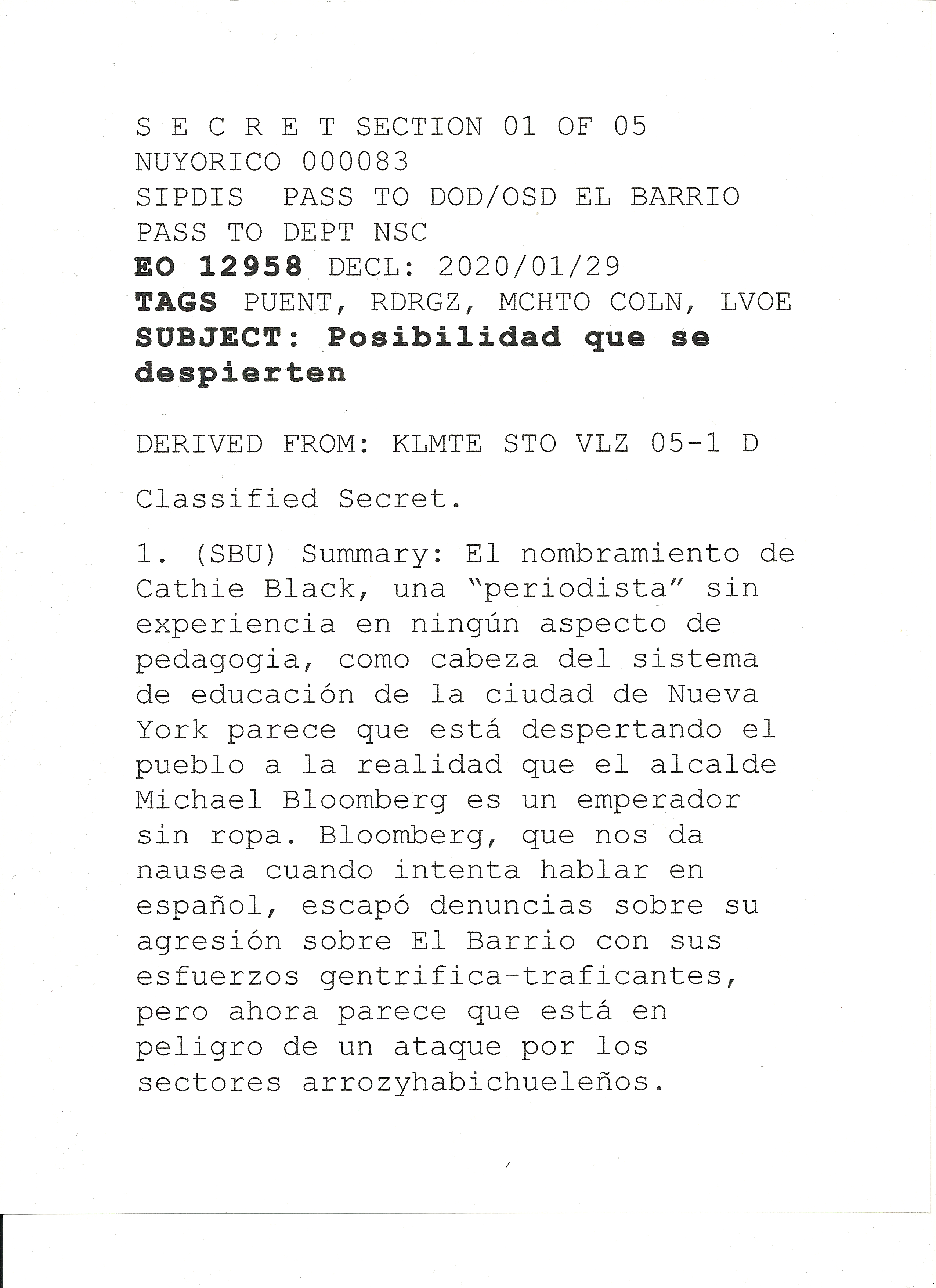The Wikileaks phenomenon is remarkable because it seems to overtake whatever passes for “the discourse” (el discurso) and explodes from within any notion of a temporal news cycle, illuminating a hidden speech that we have always known exists, but could only rely on paranoia to imagine. The sheer volume of the documents cause revelations to burst in a strange, unpredictable rhythm, like the pyrotechnics of a Fourth of July fireworks show observed from a Spanish Harlem rooftop. Los Saudis son los que más apoyan a grupos como Al Qaeda? Why are we in Afghanistan, then? But you knew that. And what’s this about Cristina Kirschner being stressed out?