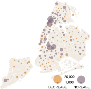 Black populations are declining in some traditionally black areas; in central Brooklyn and Harlem, where whites are moving in, but also in southeast Queens, which black families may be leaving for the suburbs.