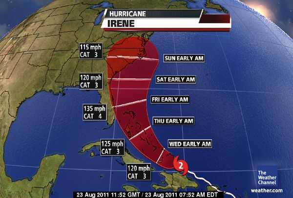 Hurricane Irene is an entirely new–perhaps annoyingly postmodern–phenomenon. It is clearly the first of a super-breed of Eastern Seaboard mega-storms, caused by increasingly higher temperatures of the temperate area of the Middle Atlantic. It has a much wider swath than tropical hurricanes, and it brings with it the possibility of tornadoes, destructive torrential wind and rain. and severe ocean swelling that could cause potentially catastrophic coastal damage. If it doesn’t happen severely this time, it will in the future.