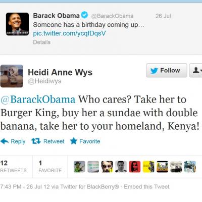 As huracán season approaches, the political and social climate in Puerto Rico continue to deteriorate, making it increasingly urgent that the current regime of the misnamed New Progressive Party (PNP) be dismantled in the fall elections. Consider this tweet, featured in the current edition of Noticel. In mangled English, sent out by Heidi Anne Wys, a political consultant to the president of the PNP-controlled Puerto Rico House of Representatives, Jennifer González, suggests not only that Obama was born in Kenya, but that he should be associated with not one, but two bananas. Talk about double consciousness.