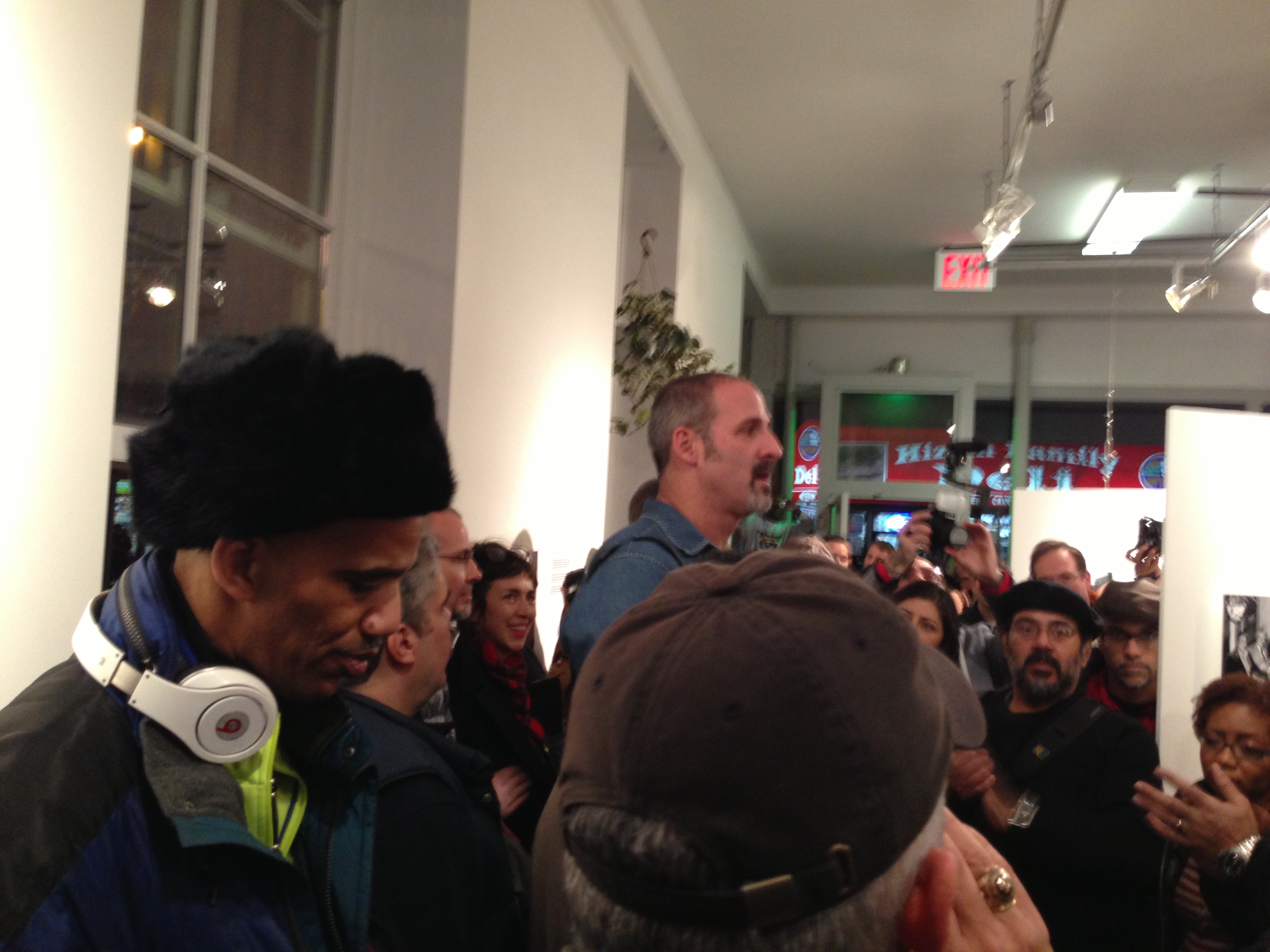 There were so many people there that you missed people that only later you are informed had come out. You catch a glimpse of Henry Chalfant, director of Flying Cut Sleeves and From Mambo to Hiphop, completely miss Bobbito García, latch onto to Angel Franco, who gave you one of the most profound and kickass funny days of City Section journalism ever. There was David and Arlene and Rafa and Monxo and Libertad and their baby and Michael and Calixto and one of your students and people who recognized you and said shit to you and people who didn’t recognize you and even some bomberos from down the block in full gear came in to check it out.