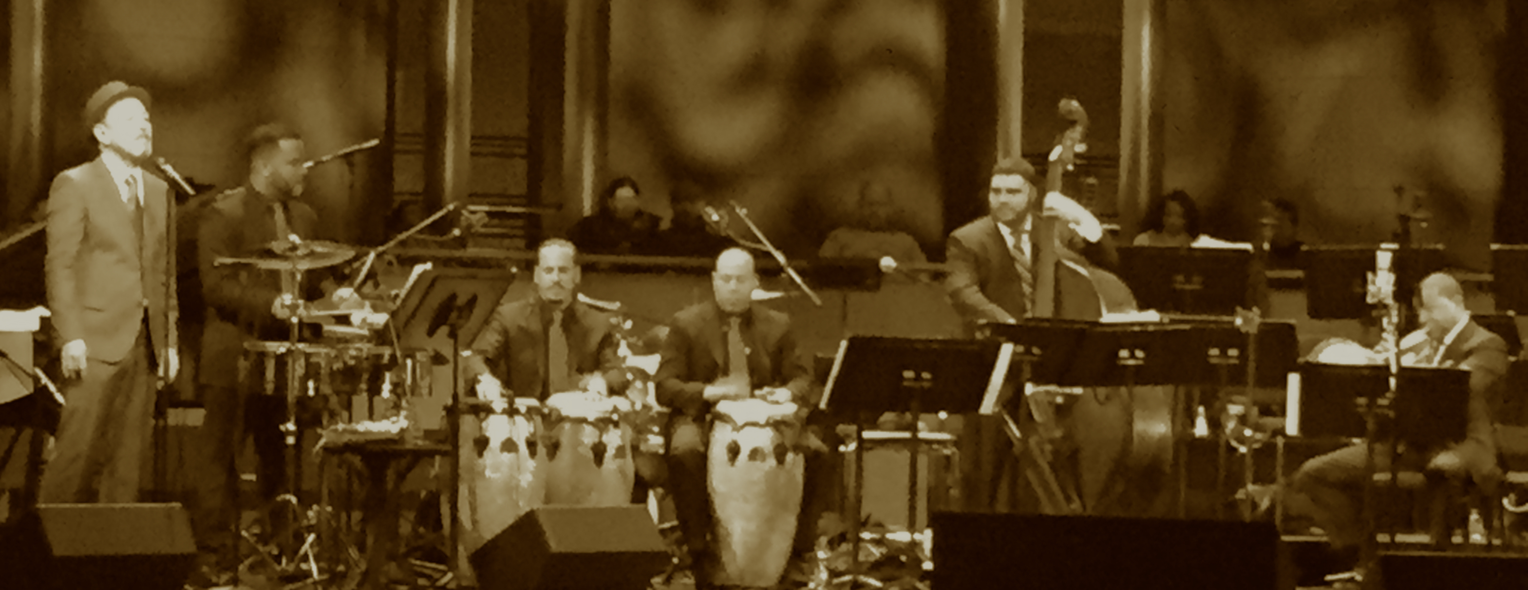 So here was Blades crooning tunes like Harold Arlen and Truman Capote’s “Don’t Like Goodbyes,” George Gershwin’s “They Can’t Take That Away From Me,” and Otis Blackwell’s “Fever,” the latter sung in a duet with his wife, Luba Mason, an accomplished Broadway singer. Some of the standards were sung straight up, others featured shifts in arrangements from swing to rumba, walking bass strut to guaguancó, the kind of thing that Jerry and Andy González used to do in the Fort Apache Band. It was not insignificant that Carlos Herniquez, bassist and music director for the JALC Orchestra, was masterminding these changes as Andy once did, taking the listener on a seamless journey between parallel and interweaved moments in jazz and popular music history.