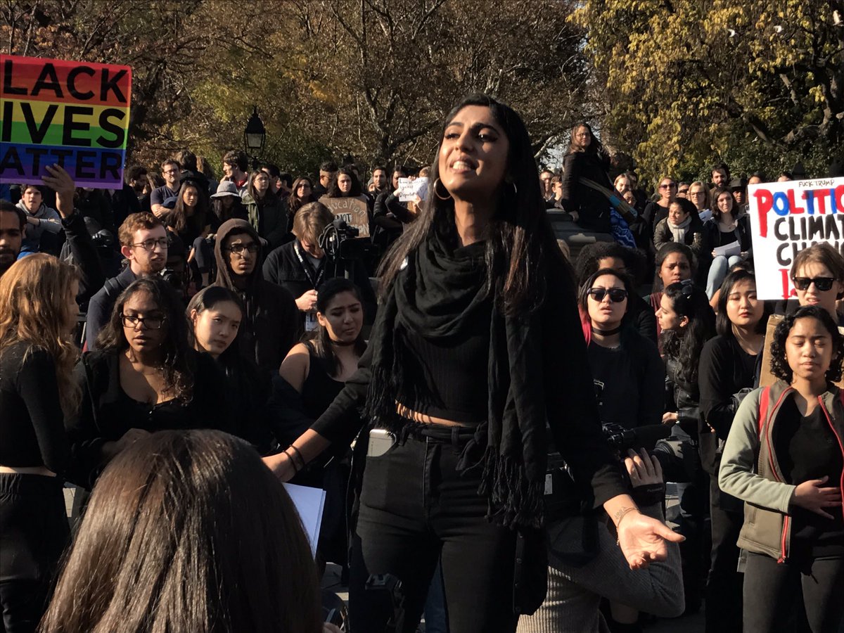 Kiana Karimi is a graduate student in Performance Studies who confronted President Hamilton in the town hall. “NYU Sanctuary Coalition is one of the only spaces at NYU where the group is absolutely diverse,” said Karimi, who is from Iran. She was personally affected by the travel ban when she returned from Egypt two days after its implementation in January. “I was questioned about my background, why I had traveled to Egypt. Some people in the room with me were there for hours. It was a very different experience than I’ve ever had entering the U.S.”