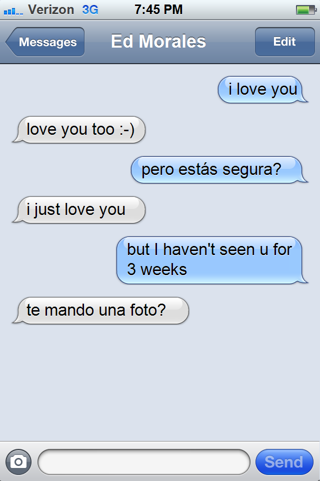 Edward-Snowden Ahora que Edward Snowden consiguió el asilo político en la rusia, me imagino que tendría la oportunidad de encontrar un lugar relativamente afuera del sistema de vigilancia perpetua y estar solo con sus pensamientos. Imagínate lo lindo de ese estado–chévere, no? Estarías libre de pensar en el último encuentro con un amante, crear una obra de arte, planear los próximos pasos de tu vida, o simplemente dejar que tu mente se queda en blanco. Lamentablemente, este momento casi sagrado se ha convertido en uno de los últimos espacios de privacidad que nos queda. Porque, debido a como ha aumentado nuestra vida en linea (o en smartphone), y una concurrente reducción del tiempo que pasamos cara a cara con otro ser humano, un porcentaje cada más grande de nuestros pensamientos ahora son fácilmente accesible como información digital. Ed Morales text message¿No era Karl Marx que dijo una vez que eventualmente todo que consideramos sólido–naciones, instituciones como la prensa, el propio mecanismo de producción, se iba a derretir en el aire? Pero hoy día, el reverso está pasando con nuestros pensamientos. Se están concretizando voluminosamente , y si tienes un archivo y una compu, nunca serán destruidos. Siglo y pico después de Marx, Foucault implicó que las confesiones de prácticas sexuales en los siglos antes del modernismo fueron claves en formar la esencia de la “verdad.” Ahora el internet, la pornografía–confesiones de prácticas sexuales–domina a casi todo, entonces se puede imaginar que la verdad ahora se forma de confesiones de lo que quisieras comprar, las vacaciones con la familia, y quizás unas opiniones sobre la política quizás sospechosos. Y también cualquier pensamiento que no tiene que ver con el sexo.