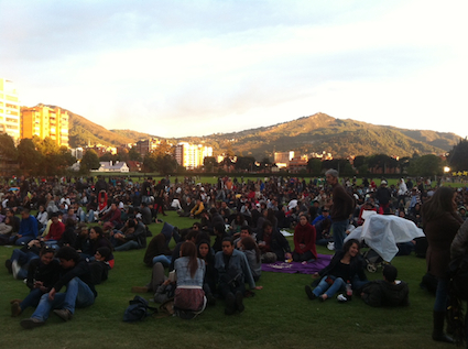 Dicen que Bogotá es el frio capital del antiplano, “gris y solemne” como confirma Clarisa Ruiz, Secretaria de Cultura, Recreación y Deportes. Y de una manera es. Cuando llegué allí en los principios de septiembre, salió el sol fuerte por solo u mediodía, durante nos quitamos los sacos y sudamos un poco para aprovechar antes de que regresará los nubes y las lluvias livianas pero persistentes que dominan la clima. Todo el mundo se vista con chaquetas, algunas veces de cuero, y las mini-faldas y pantalones cortos del caribe, bueno ya no hay esperanza de esto. Debajo de la neblina que te recuerda a los fríos veranos de San Francisco hay una población, con actitud Neoyorquia, que sufre de una falta tremenda de melanin. Pero en realidad los bogotanos se comportan, para mi, un boricua viviendo en el relativamente árctico norte, con un calor y inquisitividad  que desmientan las críticas de los paisas de medellín y los costeños de cartagena y barranquilla. Los bogotanos quieren ser salseros, quieren bailar la cumbia y cantar el vallenato, quieren moverse en la forma circular aftricano, quieren perderse en todo tipo de música. Por eso es que este año Bogotá fue nombrado como una Ciudad Creativa de la Música por UNESCO, y  quieren que todo el mundo lo sepa: tenemos mucho calor. “Bogota se tropicalizò,” sigue Ruíz, hablando de la tarima del Teatro Jorge Eliécer Gaitán, donde se dió un concierto en celebración de esta designación. “El mapa de la ciudad esta tatuado con un pentagrama de circuitos sonoros que van desde el jazz y la salsa, los mariachis, el reggaetón y el hip hop, la chirimía y el rock.” Colombia tiene infinitos generos de música folklórica que se pueden encontrar en la costas dominados por estéticas africanas, o los valles y montañas donde predominan mestizos y criollos, un ritmo clave simbolizando la idea de una nación mestiza, la cumbia, y cantos pregoneros como el vallenato. Pero la ciudad principal de Colombia no es el puerto principal, como es en las islas caribeñas, es este gris y solemne capital de las nubes, el imán que atrae migrantes buscando trabajo, y más reciente, desplazados de regiones victimizados por los excesos de una guerra civil que ha durado más de 50 años. Como muchos países de las américas, Colombia ha hecho el fenómeno de la naturaleza híbrida o syncrética de su música come un proyecto de construir una identidad nacional. Como hizo el compositor Lucho Bermúdez con ritmos como el porro, o Pacho Galán con cumbia y su invención, merecumbé, la industria de música en Colombia en varias épocas se ha dedicado a fusionar varias tendencias de una manera que es metáforo para la misma diversa carácter de la población. Este ideal le provoca a los colombianos de anunciar su devoción y su orgullo de géneros como el hiphop (manifestado por grupos como Choc Quib Town, Midras Queen y MC Diana Avella), el Jazz (el magnífico agrupación Big Band Bogotá), la salsa (Grupo Niche, Joe Arroyo), y el rock (los enigmáticos Aterciopelados). En el concierto del teatro Jorge Eliécer Gaitán (nobmrado por el figura del partido Liberal que fue asesinado in 1948, el empiezo de la guerra civil) todos los Bogotanos se pararon a bailar y festejar en celebración de los salseros posmodernos, La 33. Aunque se puede discutir si La 33 es devera un conjunto de salsa, lo importante era que simbolizaron el deseo del Bogotano de participar en este experimento de identidad tropical, en la misma manera que Big Band Bogotá crea una sensación de que de repente estuvimos en Nueva York o Nueva Orleans. El grupo que terminó el concierto, Onda Trópical, fundido por Mario Galeano, un visionario de música híbrida en Colmobia, me parecían como un versión más cosmopolitano en espiritu e ejecución que por ejemplo Los Pleneros del 21. Todo esto era un proyección muy ambiciosa, una designada a convencer el mundo que Colombia hace una mezcla formidable y dificil de reproducir. Los gustos del Bogotano no se limitan a grupos locales tampocos. Un concierto con el  pianista Dominicano Michel Camilo y el percusionista incomparable Giovanni Hidalgo fue recibido con una sabidurâ y sofisticación que hasta el mismo Camilo se encontraba cómodo, en casa y hablando en español con una fluencia que no se escucha en Nueva York, donde quizas no es obvio que es influido por Ernesto Lecuona, y que la relación entre Giovanni y el es directo, emocional, cumplida por una manera de disciplina entre colegas e amigos. En la Gaira Café de Carlos Vives y su hermano se encontraba una estructura que recuerda El Hard Rock por su commodificación de la ideintidad Colombiana, pero la música servía para emocionar el pública hasta un nivel que no ví en todos los otros funciones. Parece que la mayor parte de la alma de los Colombianos está ocupado por el ritmo de la cumbia y el canto del vallenato, un canto de un campo misterioso en el universo garcía márquez. Aquí fue que los invitados europeos se salieron un poco de su seriedad. Después del concierto de Big Band Bogotá, en un centro inmenso que también contenía un biblioteca grandote (La Biblioteca Pública y Centro Cultural Julio Mario Santo Domingo, nombrado por la familia que son dueños de la cadena Caracól), pasamos a ver jóvenes estudiantes leéndo y nos encontramos con Diana Avella, que forma parte del  Colectivo Distrital de Mujeres Hip Hoppers. Avella está orgullosa de poder practicar su arte y también participar en los otros elementos del género como breakdancing, pintando graffiti, y manejar los turntables de DJ. “Frente al nombramiento por parte de la Unesco, cuando me entere y me invitaron a hacer parte del video que promociona este nombramiento en diferentes espacios culturales, fue como una recompensa esperada para mi ciudad,” comentó. “Yo soy orgullosamente Bogotana, criada en el frio capitalino, y he visto como Bogotá se prepara cada día de una mejor manera para la d