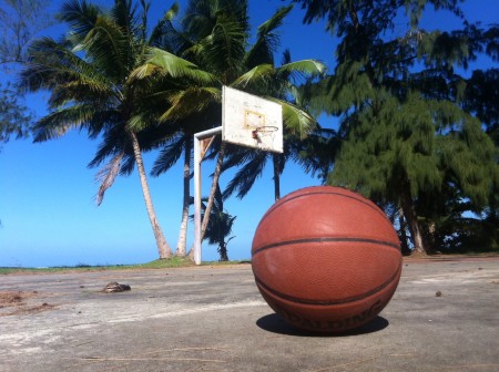 En la conferencia de prensa después del juego Anthony dijo, “hay cosas que entre hombres no se dicen.” Aunque fue víctima del juego de Garnett, El Melo mostró que parece que fue el corazón parti’o, y no el contrato multimillonario, ni orgullo profesional que le guiaba. ESPN se convirtió en la estación de las telenovelas. Y aunque hay rastros de Freud en un juego que cuenta en meter un balón en un cilindro, hasta el bobo de Melo posee un espíritu de combate y se puede decir espiritualidad en sus movimientos dirigiéndose al gol que se debe de celebrar como el rey de Boricua basket. Es un deporte distinto del boxeo, en donde por la mayor parte se evita el contacto físico brutal. El básket es un baile de resolución de conflictos. Por eso es que, en esa cancha al lado del mar, paso tanto tiempo tratando de capturar esos momentos, que me vienen menos y menos, en cuando estoy en el aire, flotando, volando, y despachando el balón al cielo. En el aire dulce y salado de la costa caribeña, me empujo hacia los nubes y me imagino como guerrero por la paz y el placer sutil de mis metafóricos Honey Nut Cheerios. IMG_0095