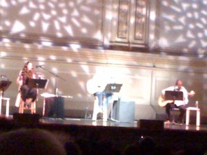 Silvio’s presence was completely different from his press conference the week before; he was in his performer mode, almost no speechmaking other than dedicating the show to the eighty-something Pete Seeger, present in the second row, and a shout-out to the Cuban 5. The group accompanying him, including his wife, the classically trained flutist Niurka González, were an idealization of the Cuban conservatory system–precise, yet emotional; exquisite harmony, impeccable rhythm.