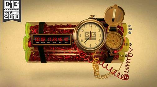 The above is from the latest publicity materials sent out by Calle 13, Puerto Rico’s leading agitprop art-hiphop combo, to publicize their new album, which drops in October. While lyricist/MC Residente, a/k/a René Pérez etc. has flirted in the past with “explosive” imagery (most notably this triplet from the massive hit “Atrévete: “señorita intelectual ya se que tiene el area abdominal/que va a explotar como fiesta patronal/que va a explotar como palestino”), this would seem the most literal attempt at “metáforo bomba.”